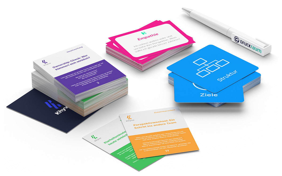 Wir drucken Kartensets und Spielkarten in hochwertiger Qualität – für Workshops, Trainings, Lernformate oder private Projekte. Sie erhalten präzisen Druck nach Ihren Druckdaten, zuverlässig umgesetzt und ideal für den regelmäßigen Einsatz.