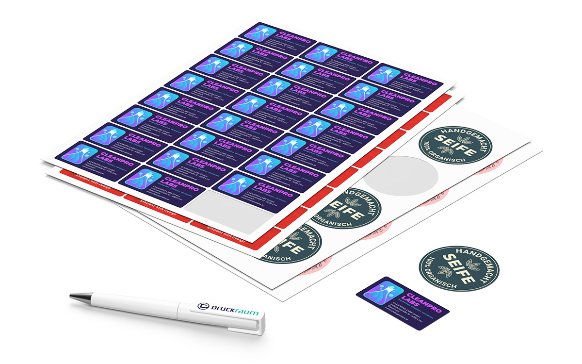 Bei Druckraum erhalten Sie hochwertige, individuell bedruckte Bogenetiketten – perfekt für Produktkennzeichnungen, Adressaufkleber oder Verpackungen. Unser präziser Druck und die zuverlässige Haftung sorgen dafür, dass Ihre Etiketten professionell aussehen und sicher halten.